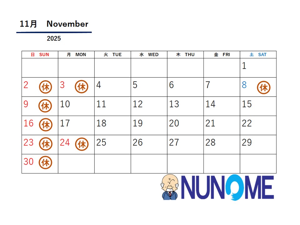 11月休業日のお知らせ
