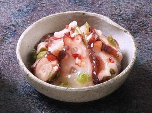 たこのコリッとした食感と茎わさびのシャキッとした食感も楽しめます。